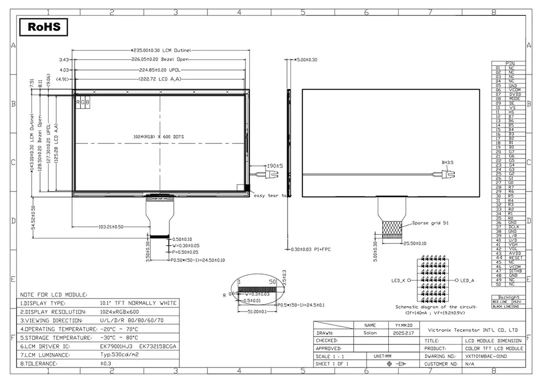 టిఎఫ్టి మాడ్యూల్ను జీవితంలో ప్రతిచోటా చూడవచ్చు, విక్ట్ట్రోనిక్స్ 10.1 అంగుళాల టిఎఫ్టి సాధారణంగా ఇతర తయారీదారుల నుండి వైట్ మాడ్యూల్ను భిన్నంగా చేస్తుంది? మొదట, ఇది వివిధ లైటింగ్ పరిస్థితులలో స్పష్టమైన వీక్షణ కోసం 530 CD/m² యొక్క సాధారణ ప్రకాశాన్ని మంచి ఏకరూపత (≥75%) తో అందిస్తుంది. రెండవది, ఇది అధిక/తక్కువ -ఉష్ణోగ్రత ఆపరేషన్/నిల్వ, ఉష్ణోగ్రత సైక్లింగ్ మరియు తడి వేడి పరిస్థితులను తట్టుకోవటానికి రూపకల్పన చేయబడలేదు మరియు పరీక్షించబడలేదు, తద్వారా -20 ° C నుండి +70 ° C వరకు విశ్వసనీయంగా పనిచేయగలదు, -30 ° C నుండి +80 ° C నుండి నిల్వ సహనంతో, కానీ సాధారణ వ్యవస్థల యొక్క ప్రామాణిక 24 -బిట్ RGB ఇంటర్ఫేస్ను కూడా ఉపయోగిస్తుంది. ఇవి సమర్థవంతమైన పనితీరును కలిగి ఉంటాయి. అంతేకాకుండా, ఇది 50,000 గంటల (50% ప్రకాశం నుండి) సాధారణ జీవితకాలంతో 7x6 వైట్ LED లను ఉపయోగించుకుంటుంది, ఇది వివిధ లైటింగ్ పరిస్థితులలో స్పష్టత మరియు గంటల ఉపయోగం కోసం ఉపయోగించబడుతుందని నిర్ధారిస్తుంది.