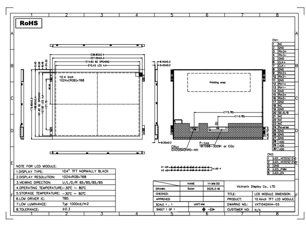 ఇంటెలిజెన్స్ యుగంలో, దృశ్య ఆకృతులలో అవసరమైన డేటాను ప్రదర్శించడానికి TFT మాడ్యూల్ మాకు అనుమతిస్తుంది. TFT మాడ్యూల్ యొక్క నాణ్యత దాని అనువర్తనాలపై గణనీయమైన ప్రభావాన్ని చూపుతుంది. విక్ట్రోనిక్స్ 10.4 అంగుళాల 1024 × 768 ఎల్విడిఎస్ హై బ్రైట్నెస్ టిఎఫ్టి మాడ్యూల్ యొక్క ప్రయోజనాలు ఏమిటి? మొదట, ఇది ప్రత్యక్ష సూర్యకాంతి, 1000: 1 కాంట్రాస్ట్ రేషియో మరియు స్పష్టమైన, ఖచ్చితమైన విజువల్స్ కోసం 80% ఏకరూపత క్రింద స్పష్టమైన వీక్షణ కోసం ఐపిఎస్ టెక్నాలజీతో 1000 CD/m² అధిక ప్రకాశాన్ని ఉపయోగిస్తుంది. రెండవది, ఇది ప్రదర్శన భ్రమణ నియంత్రణతో 6/8-బిట్ LVDS ఇంటర్ఫేస్కు మద్దతు ఇస్తుంది. అంతేకాకుండా, ఇది 2 × 13 వైట్ LED ల బ్యాక్లైట్ను 50,000 గంటల జీవితకాలం (50% ప్రకాశాన్ని నిలుపుకుంటుంది) కలిగి ఉంది, వివిధ లైటింగ్ పరిస్థితులలో స్పష్టత మరియు వినియోగాన్ని నిర్ధారిస్తుంది. ఇది 96 గంటల అధిక/తక్కువ-ఉష్ణోగ్రత ఆపరేషన్/నిల్వ, తేమ (60 ° C/90% RH) మరియు థర్మల్ సైక్లింగ్ పరీక్షలతో సహా కఠినమైన పరీక్షలకు లోనవుతుంది, తద్వారా ఇది -30 ° C నుండి +80 ° C వరకు విస్తృతమైన ఉష్ణోగ్రత పరిధిలో సమర్థవంతంగా పనిచేస్తుంది.