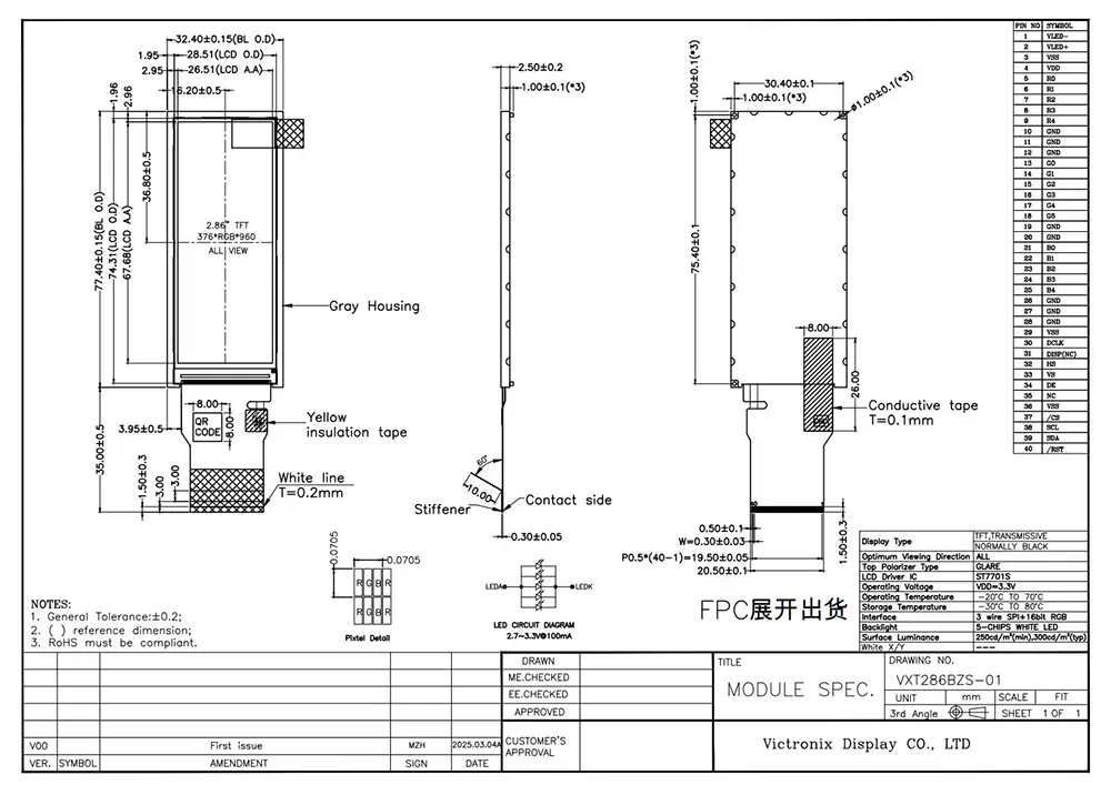 ఇంటెలిజెన్స్ యుగంలో, TFT మాడ్యూల్ అవసరమైన డేటాను దృశ్యమానంగా ప్రదర్శించడానికి మాకు సహాయపడుతుంది. TFT మాడ్యూల్ యొక్క నాణ్యత దాని అనువర్తనంపై క్లిష్టమైన ప్రభావాన్ని చూపుతుంది. విక్ట్రోనిక్స్ 2.86 అంగుళాల 376 × 960 ఐపిఎస్ టిఎఫ్టి మాడ్యూల్ యొక్క ప్రయోజనాలు ఏమిటి? మొదట, దాని 300 CD/m² ప్రకాశం, 1500: 1 కాంట్రాస్ట్ రేషియో, అన్ని దిశలలో 85 డిగ్రీల వీక్షణ కోణం మరియు 80% ఏకరూపత స్పష్టమైన చిత్రాలను నిర్ధారిస్తుంది. రెండవది, ఇది SPI+16BIT RGB ఇంటర్ఫేస్కు ST7701 లతో, మరియు 5-డైస్ వైట్ LED బ్యాక్లైట్కు 30,000 నుండి 50,000 గంటల జీవితకాలంతో మద్దతు ఇస్తుంది, ఇది వివిధ పారిశ్రామిక అనువర్తనాల్లో దాని దీర్ఘకాలిక వినియోగాన్ని నిర్ధారిస్తుంది. అంతేకాకుండా, ఇది ROHS ప్రమాణాలకు అనుగుణంగా ఉంటుంది మరియు థర్మల్ షాక్, తేమ మరియు 8KV గాలి మరియు 4KV కాంటాక్ట్ వరకు ESD రక్షణతో సహా కఠినమైన విశ్వసనీయత పరీక్షలను విజయవంతంగా దాటుతుంది. ఈ ఉత్పత్తి -20 ° C నుండి +70 ° C వరకు తీవ్రమైన ఉష్ణోగ్రతలలో సమర్థవంతంగా పనిచేస్తుంది మరియు -30 ° C నుండి +80 ° C వరకు తీవ్రమైన నిల్వ పరిస్థితులను తట్టుకోగలదు.