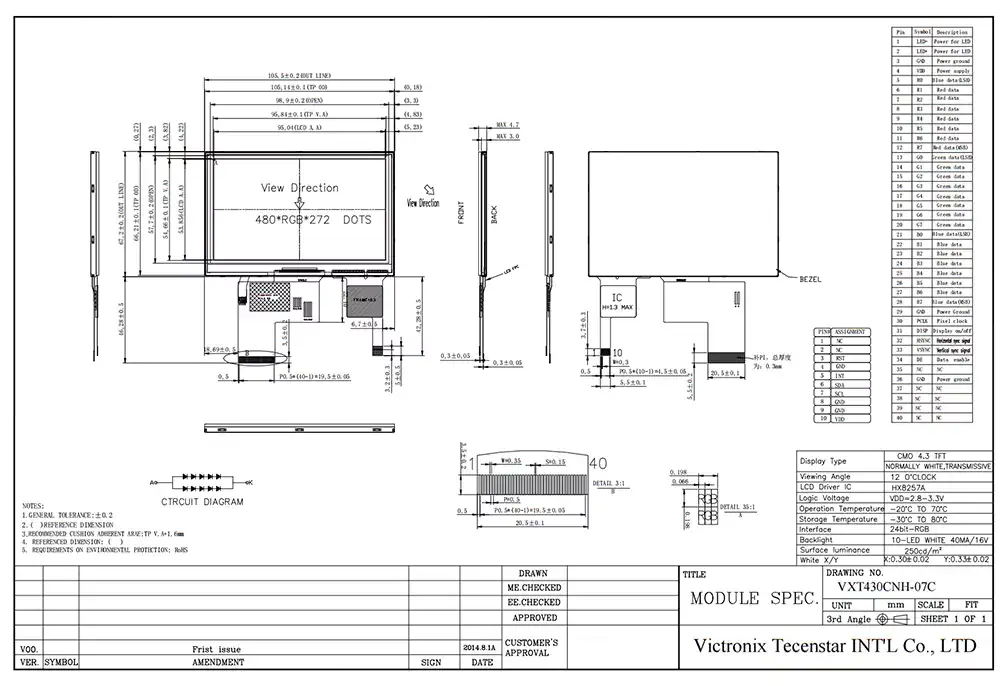 ఈ విక్ట్రోనిక్స్ 4.3 అంగుళాల 480x272 కెపాసిటివ్ టచ్ ఐపిఎస్ టిఎఫ్టి మాడ్యూల్ అధిక-పనితీరు గల 4.3 అంగుళాల టిఎఫ్టి ఎల్సిడి మాడ్యూల్, పారిశ్రామిక, వైద్య మరియు ఎంబెడెడ్ సిస్టమ్స్ కోసం విక్ట్ట్రోనిక్స్ రూపొందించబడింది. ఇది అంచనా వేసిన కెపాసిటివ్ టచ్ (పిసిటి) తో 480 × 272 రిజల్యూషన్ ఐపిఎస్ ప్యానెల్ను కలిగి ఉంది, స్ఫుటమైన విజువల్స్, విస్తృత వీక్షణ కోణాలు మరియు సహజమైన వినియోగదారు పరస్పర చర్యను 105.50 × 67.20 × 4.70 మిమీ యొక్క కాంపాక్ట్ రూపం కారకంలో కలిగి ఉంటుంది. చైనాలో టిఎఫ్టి మాడ్యూళ్ల ప్రొఫెషనల్ తయారీదారు మరియు సరఫరాదారుగా, విక్ట్రోనిక్స్ 4.3 అంగుళాల టిఎఫ్టి మాడ్యూల్ ROHS పర్యావరణ ప్రమాణాలకు పూర్తిగా అనుగుణంగా ఉంటుంది, ఇది ఉన్నతమైన అనువర్తన పనితీరును నిర్ధారిస్తుంది. మా కస్టమర్ల అవసరాలను తీర్చడానికి మేము అనుకూలీకరించిన సేవను అందిస్తున్నాము.