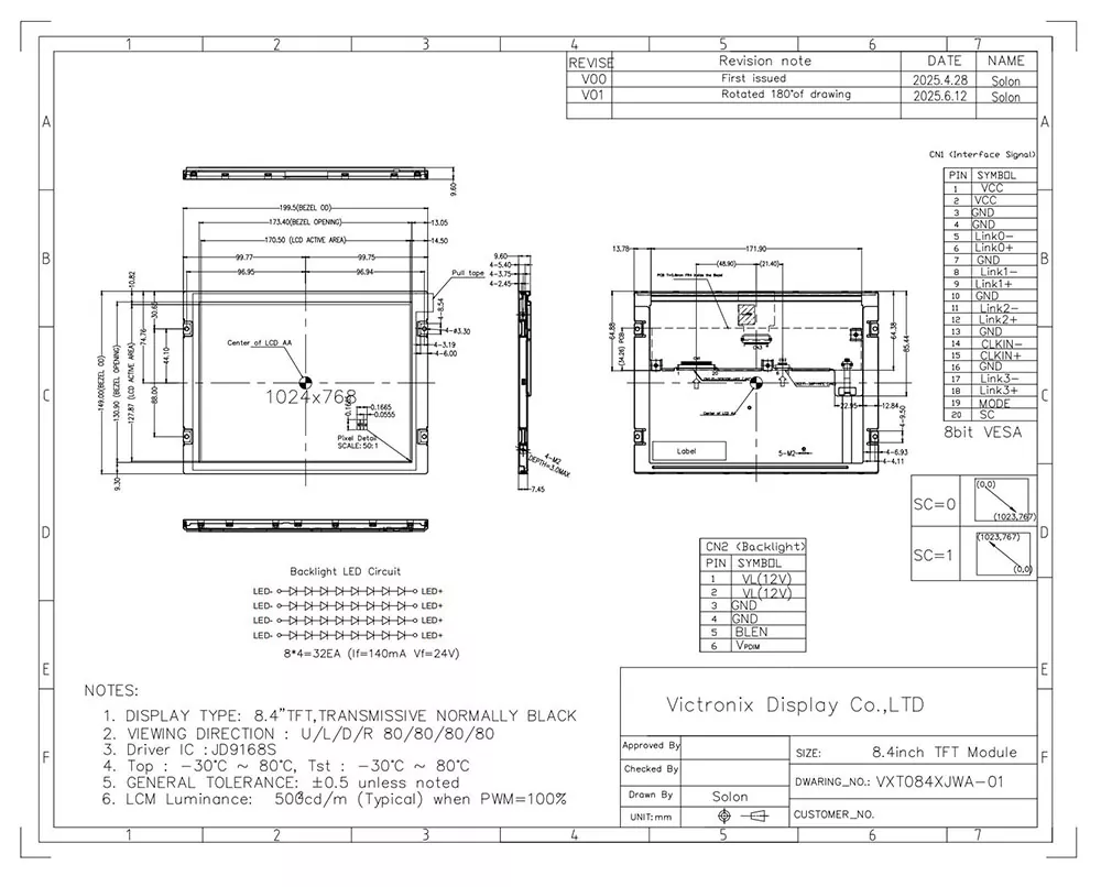 విక్ట్ట్రోనిక్స్ చేత ఈ 8.4 అంగుళాల టిఎఫ్టి ప్రదర్శన సాధారణంగా పారిశ్రామిక హెచ్ఎంఐలు, వైద్య పరికరాలు, విమానాల/వాహన వ్యవస్థలు మరియు ఆల్-వెదర్ రీడబిలిటీ మరియు దీర్ఘకాలిక విశ్వసనీయత అవసరమయ్యే బహిరంగ పరికరాలలో ఉపయోగించబడుతుంది.